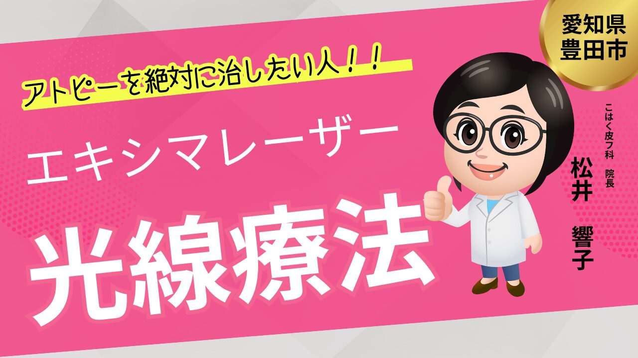 - 豊田市での治療法:ステロイド外用薬、免疫抑制外用薬(タクロリムス)、保湿、光線療法、内服治療。