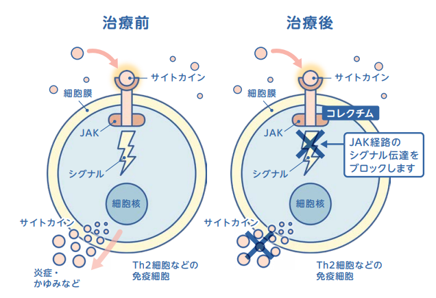 皮膚で炎症やかゆみを引き起こしている免疫細胞の働きを抑え、皮膚を穏やかな状態に導きます。