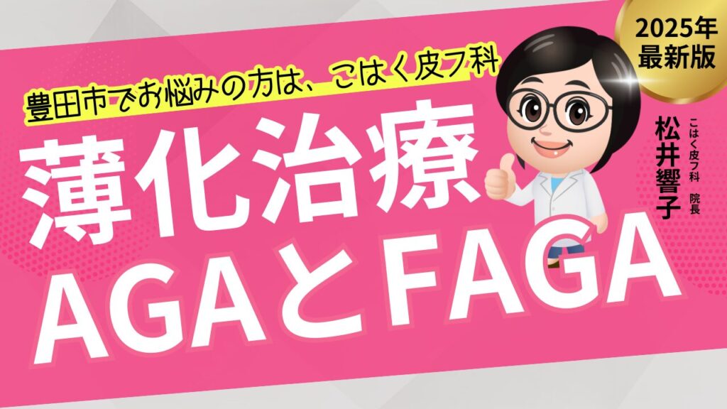 豊田市で薄毛治療(AGA/FAGA)でお悩みでしたら土日祝診療の「こはく皮フ科」へ 「最近、髪の毛が細くなってきた」「抜け毛が増えて分け目が広がってきた」そんなお悩みを持つ方は少なくありません。男性に多い AGA(男性型脱毛症)、女性に多い FAGA(女... -